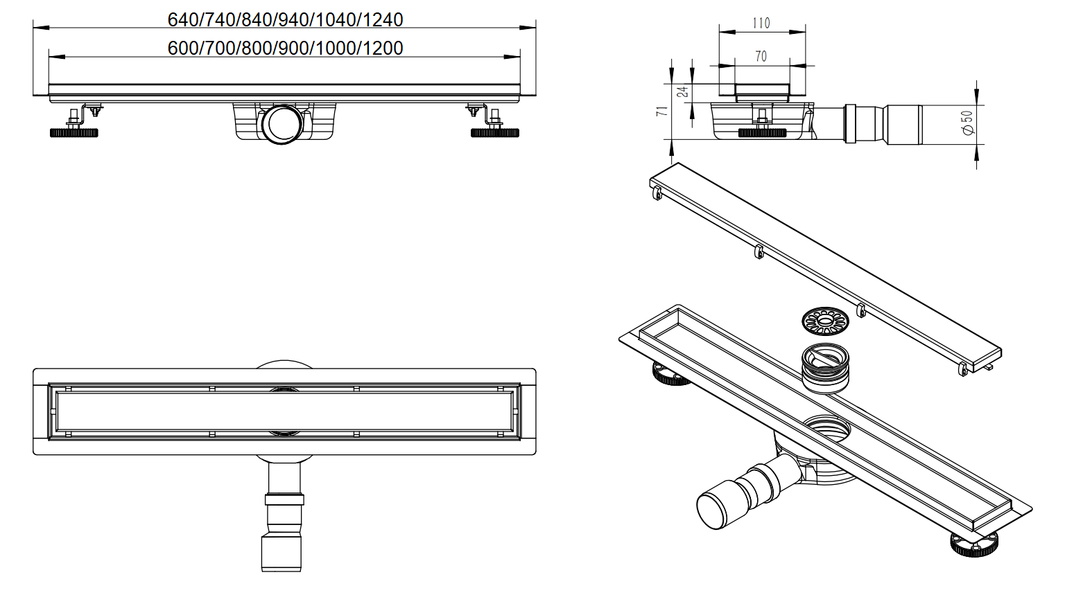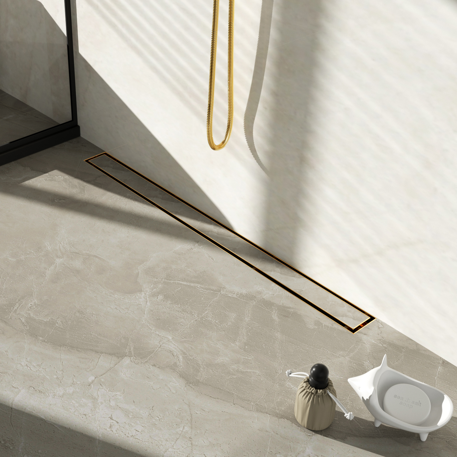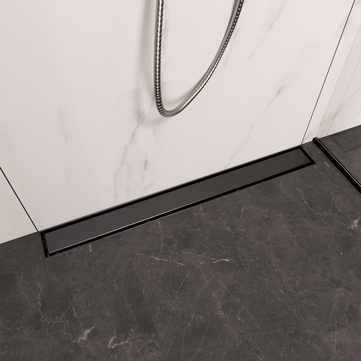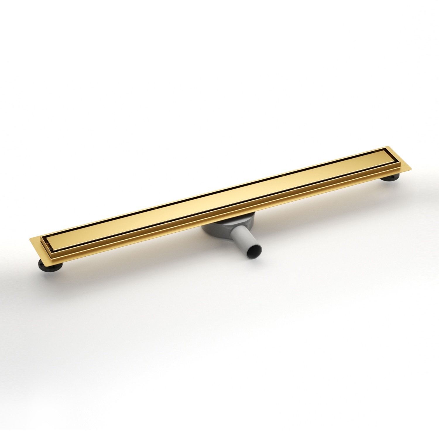 Двухсторонний линейный напольный трап с панелью из матовой нержавеющей стали и вращающимся сифоном