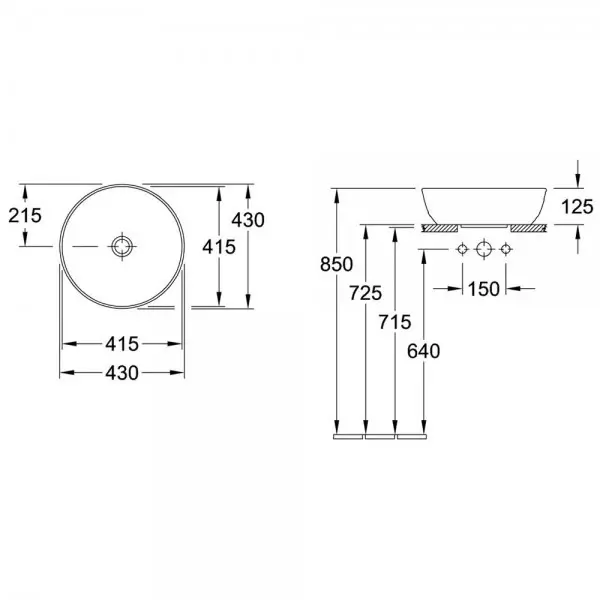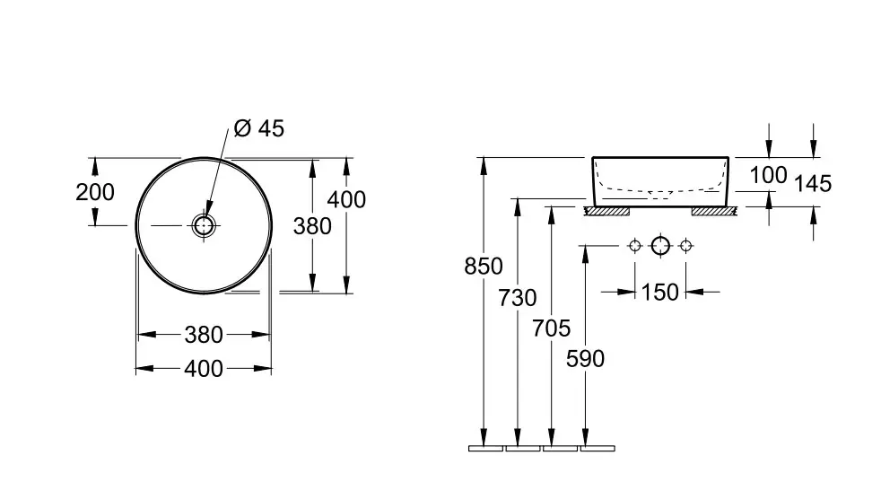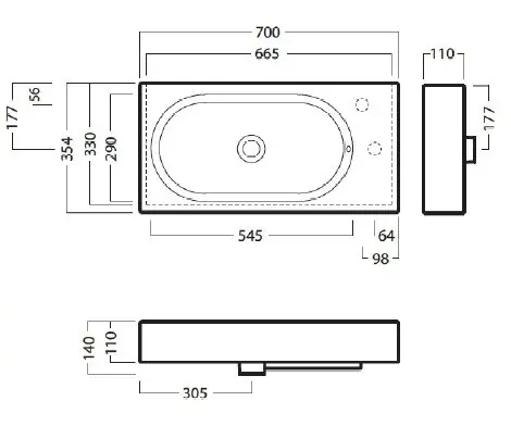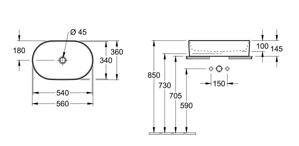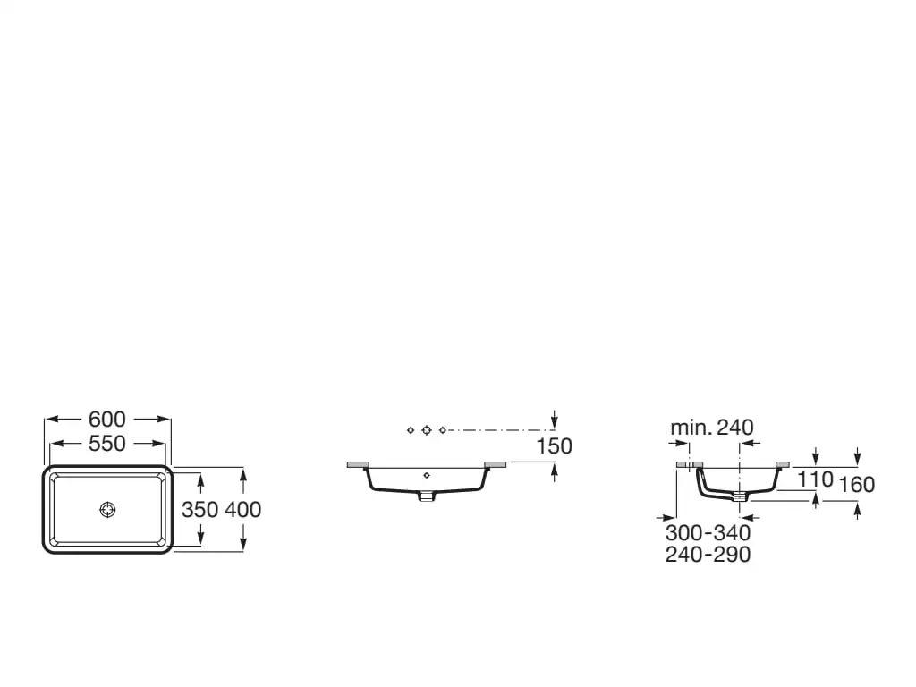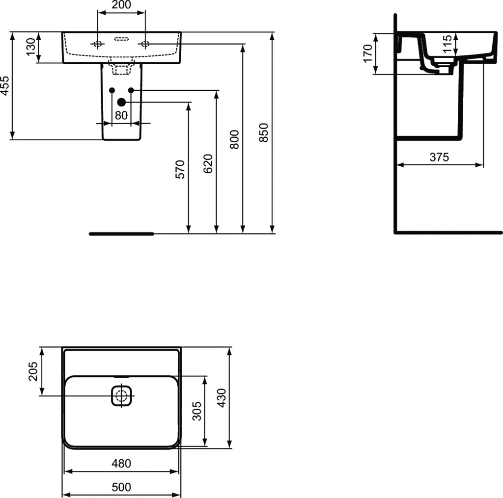 - Умывальник 50 см без отверстия под смеситель (для комбинации с настенным смесителем),