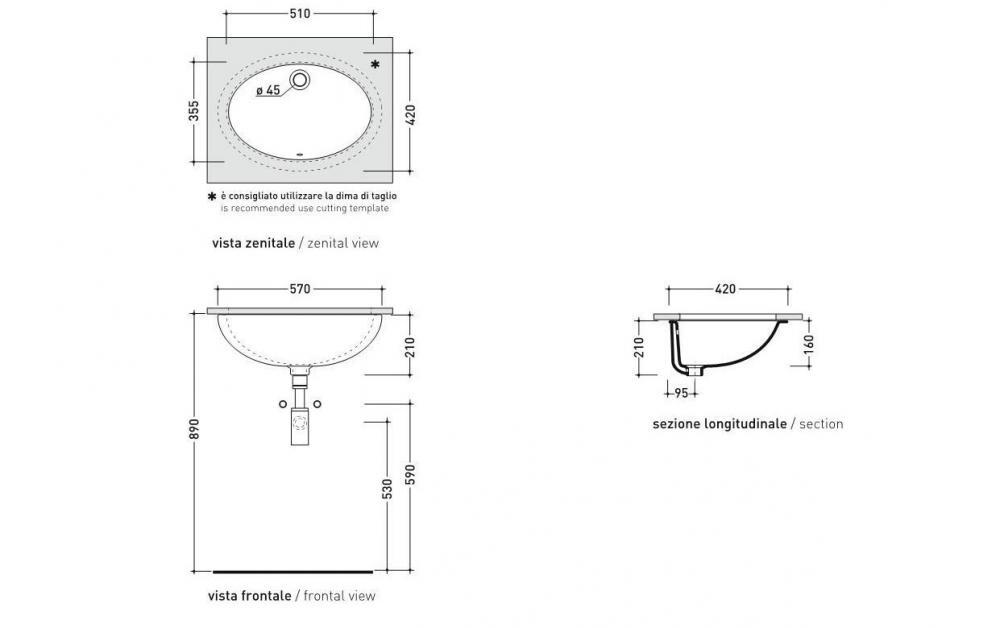 Раковина встраиваемая Flaminia Euro 51x35,5x21